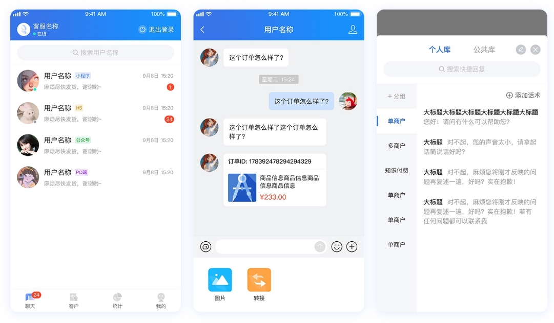 本系统(CRMChat)是采用Swoole4+Tp6+Redis+Vue+Mysql开发的独立高性能客服系统,客服系统用户端支持Pc端、移动端、小程序、文章中接入客服,利用超链接、网页内嵌、二维码、定制对接等方式让网上所有通道都可以快速通过本系统联系到商家,商家端支持Pc端、移动端(App)随时随地接收到用户的各种咨询,商家可以添加话术库、也可以对用户进行分组、加标签、加备注进行管理,是一款互联网链接商家的一个桥梁,也是商家客户管理的工具,本开源项目遵循最开放的木兰协议,可以随意使用。