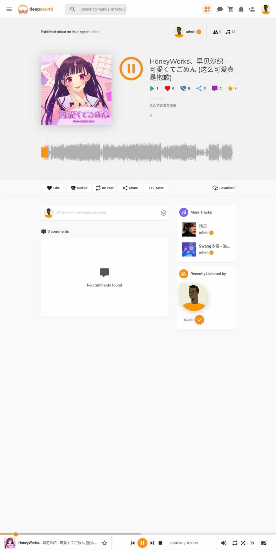 DeepSound在线音乐共享播放平台php源码,官方汉化版本,程序自带英文语言包,支持多语言。