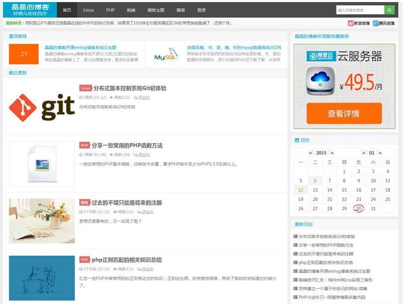 emlog晶晶博客响应式网站模板参考大前端的主题设计思路开制制作的一套emlog主题模板,扁平化风格,多屏幕自适应响应式设计,pc端最大宽度1320px、移动端、小屏幕自适应,不同屏幕不同效果展示,兼容IE8+、Chrome、Firefox、Opera、Safari浏览器,支持emlog5.3.0至emlog 5.3.1版本。