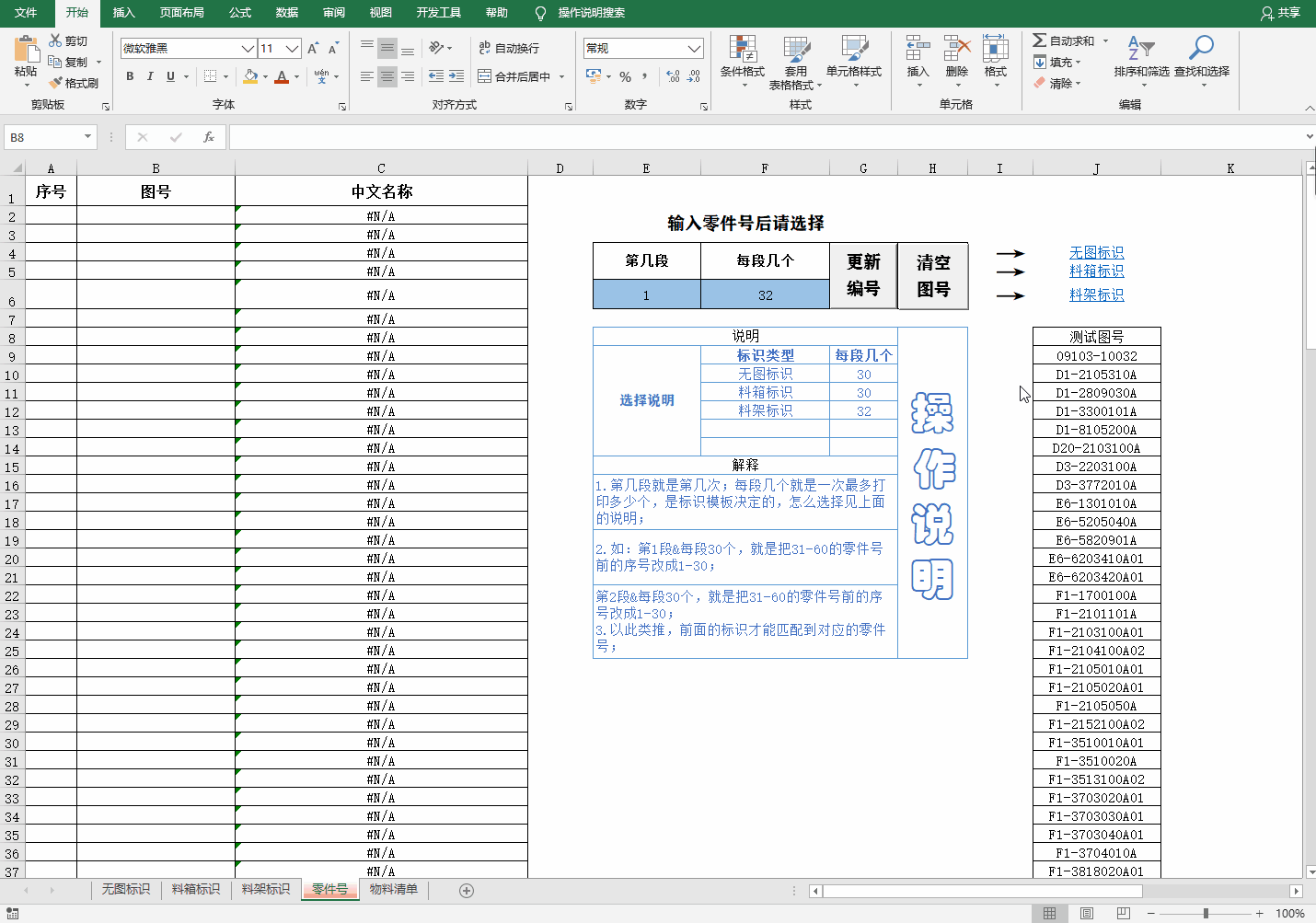 3.批量(一个或批量都可以)输入要打印标示的零件号,也可以批量粘贴过来