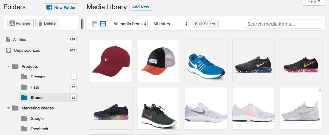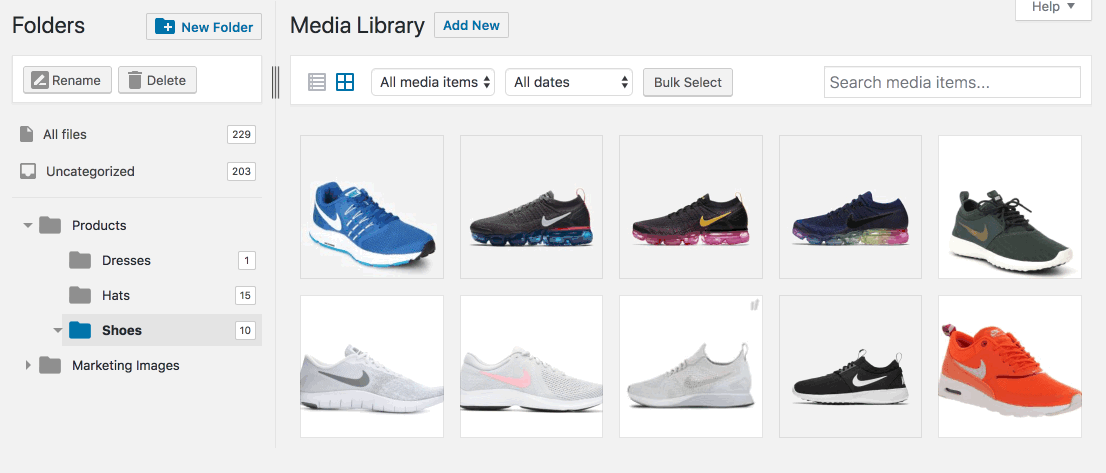 它不仅允许您创建这些自定义文件夹,而且还允许您从这些文件夹中的媒体创建图库以显示在您的网站上。将数千个上载的文件整理到文件夹、收藏夹和图库中。一个真正的文件管理器,使您可以管理 WordPress 中的大量文件,例如图片、视频或文档。