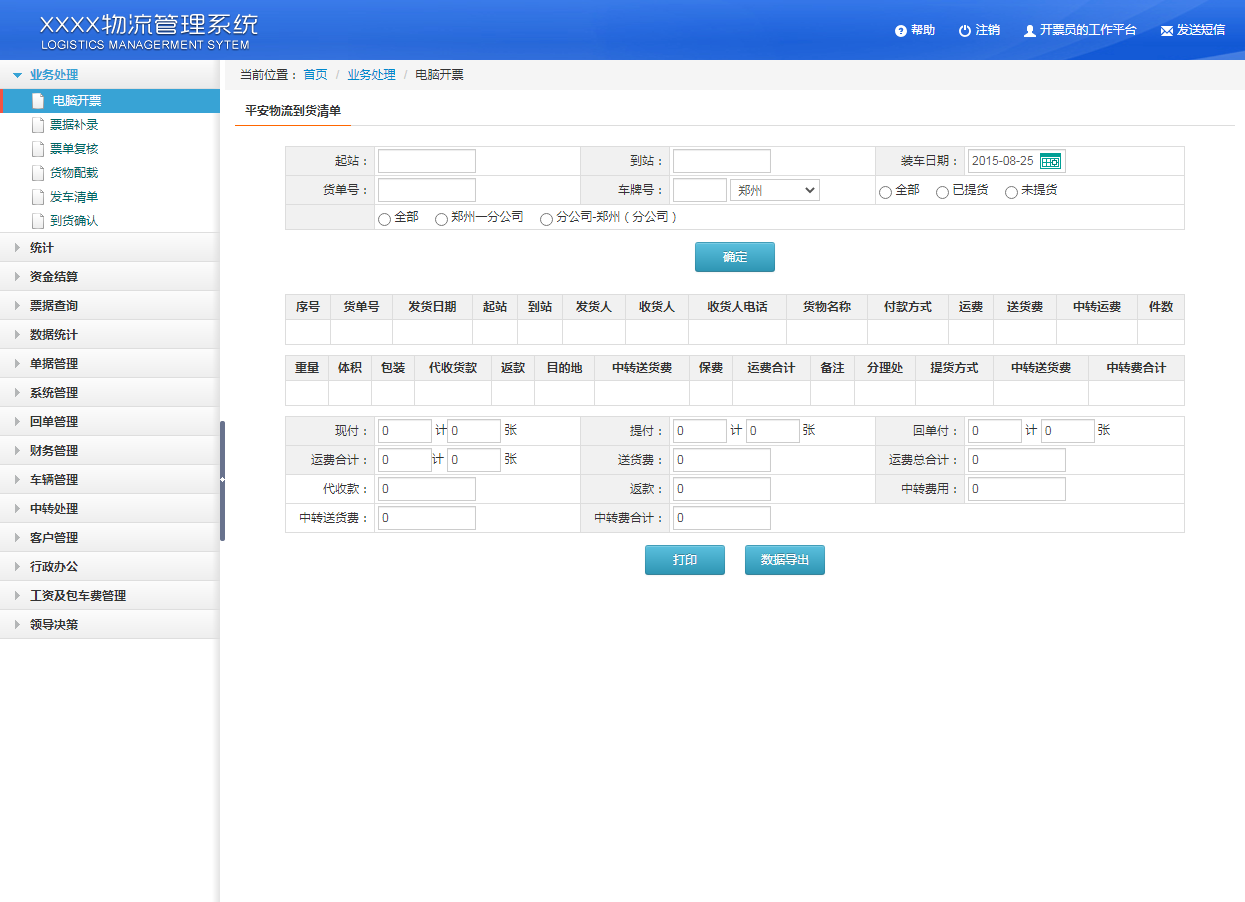 共有6个页面,分别为:登录、查询页面、排行榜、开票界面、客户投诉、线路管理,其他的可以参考已有页面继续开发。