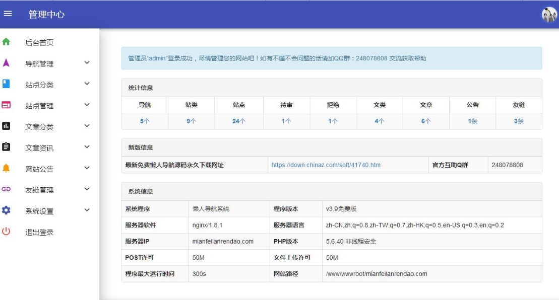 后台是:你的域名/admin/login.php 账号:admin 密码:qqqqqq
