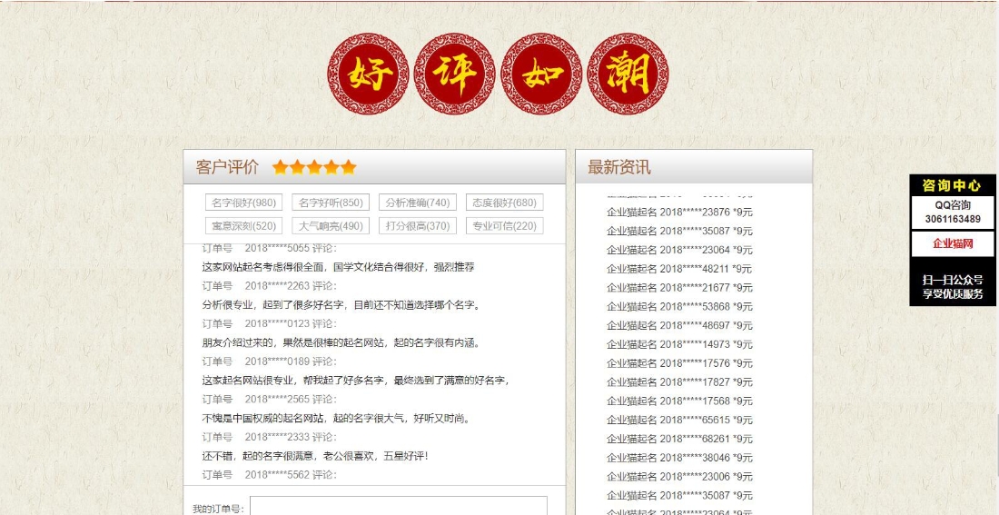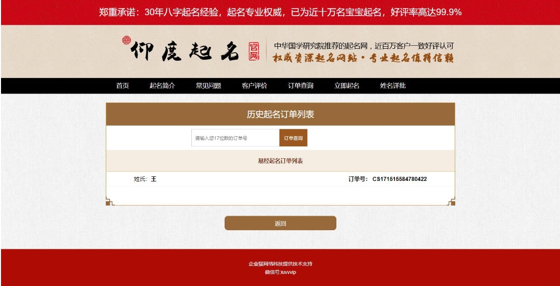 特点:免注册,免登录,可直接在线起名,并且完成付款。