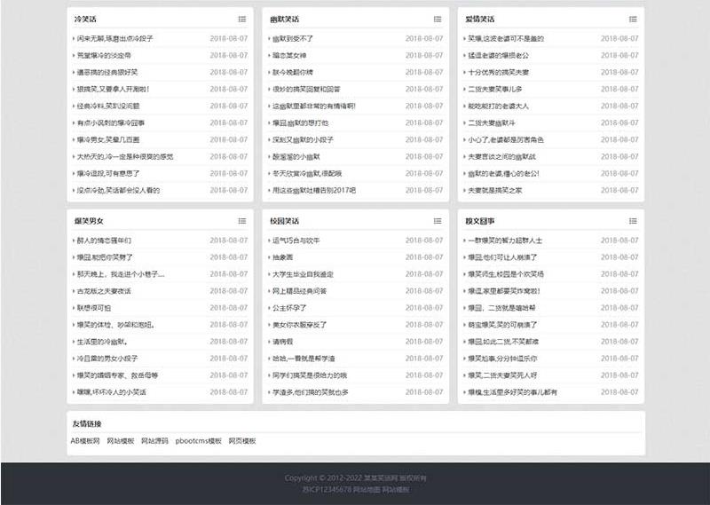 pbootcms搞笑趣图幽默笑话网站模板,自适应手机版,该模板适用于笑话网站、搞笑趣图网站等企业。