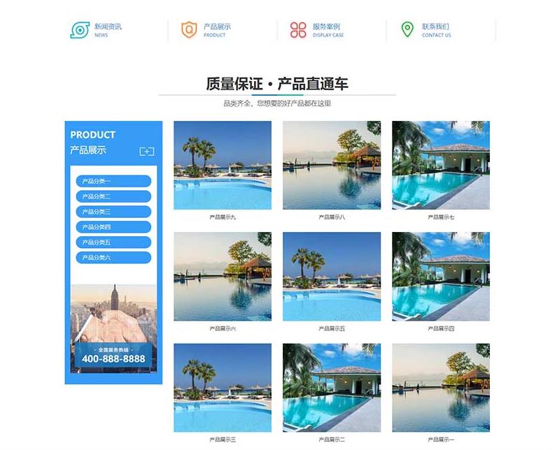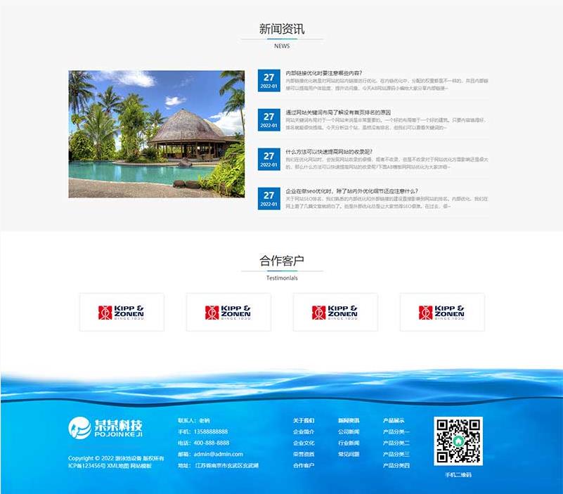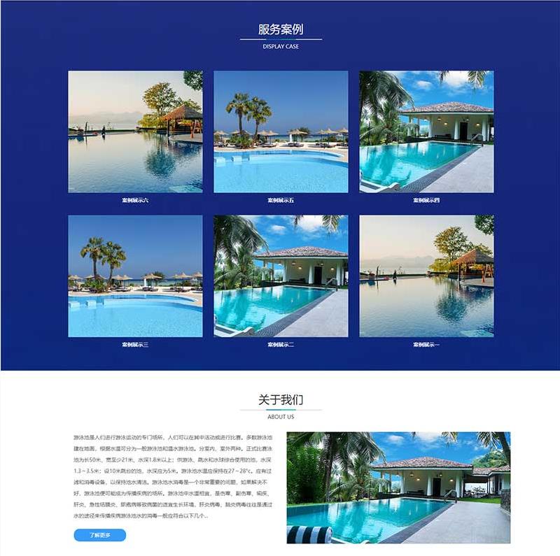 pbootcms自适应游泳馆泳池设备网站模板,该模板适用于游泳池设备网站、泳池水处理器网站等企业,当然其他行业也可以做,只需要把文字图片换成其他行业的即可;
