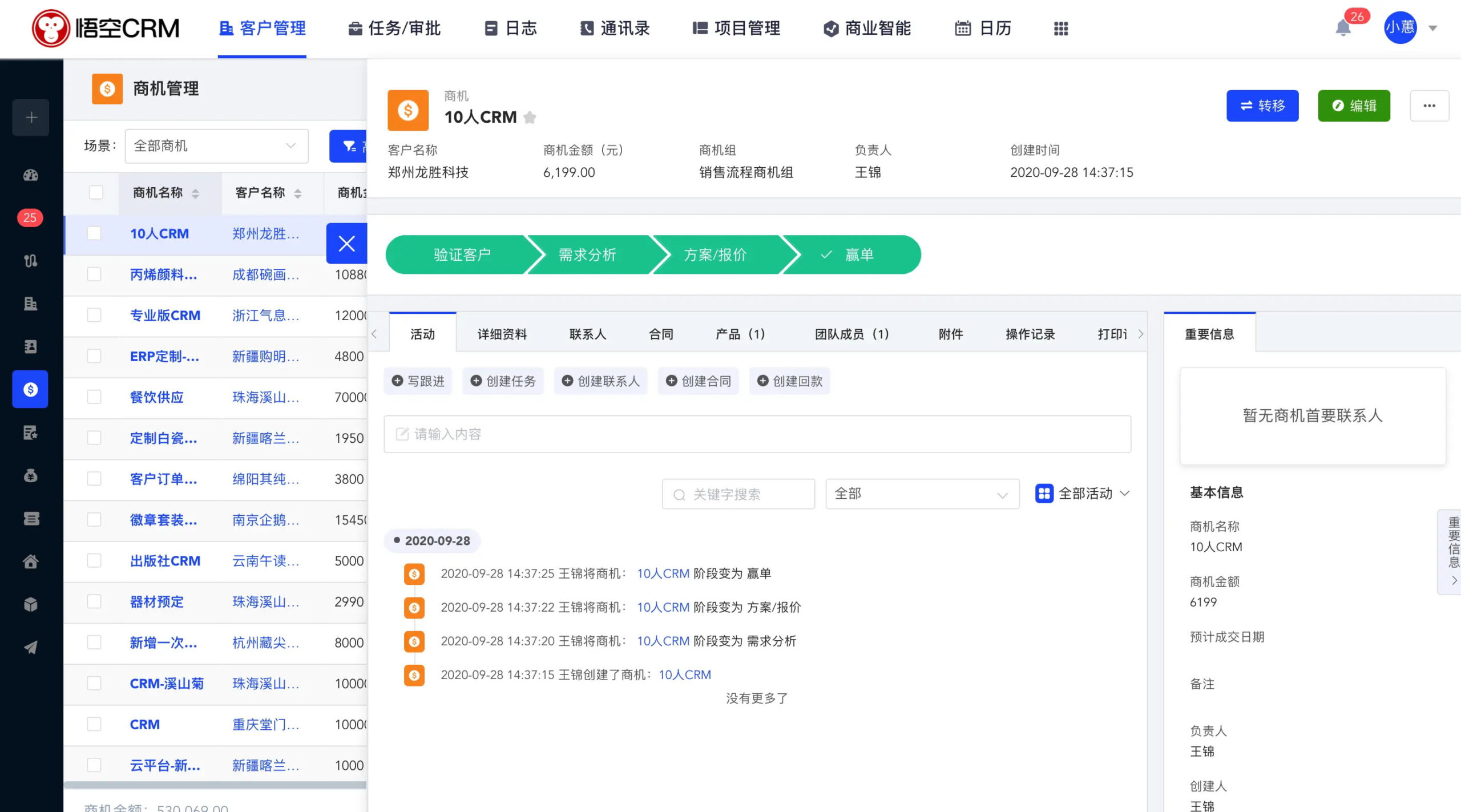 悟空CRM PHP版是一款基于TP5.0+vue+ElementUI的前后端分离CRM系统。