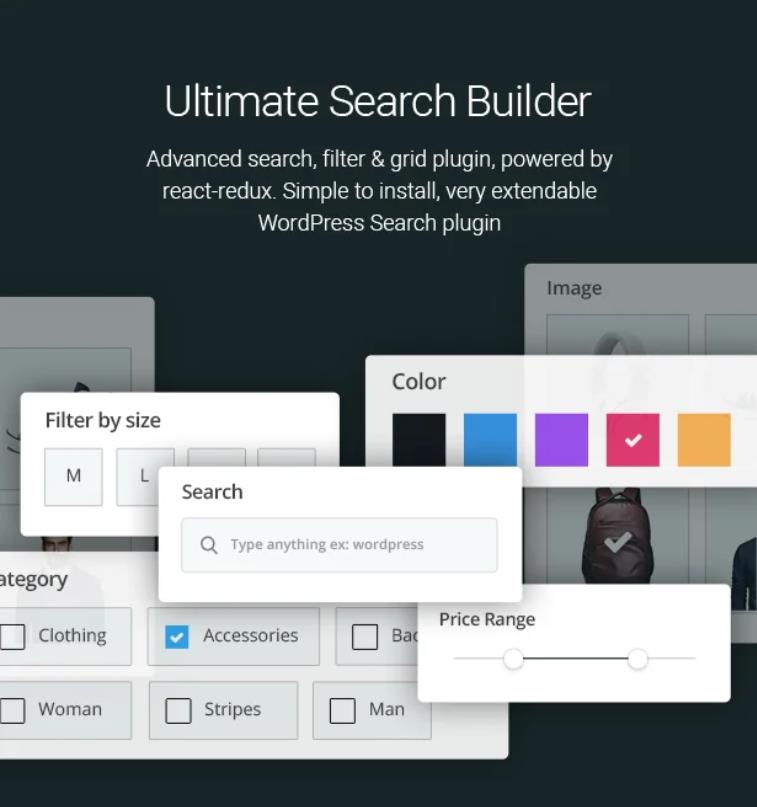 让您的客户轻松搜索,高级搜索,过滤器和网格插件,由 react-redux 提供支持,易于安装,可扩展的 WordPress 搜索插件,它有 15 个以上的搜索属性,Drag n Drop 搜索页面构建器,基于地图的搜索,主页横幅搜索,Top bar 搜索选项使其更加强大。它可以搜索帖子,产品,各种自定义帖子类型,分类,元数据和术语元素,它内置了地理位置和位置搜索功能。