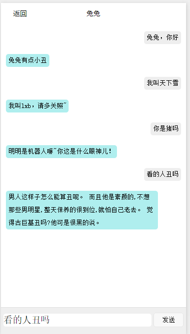 智能聊天机器人兔兔小程序源码,具体样式如下,小程序源码未测试。
