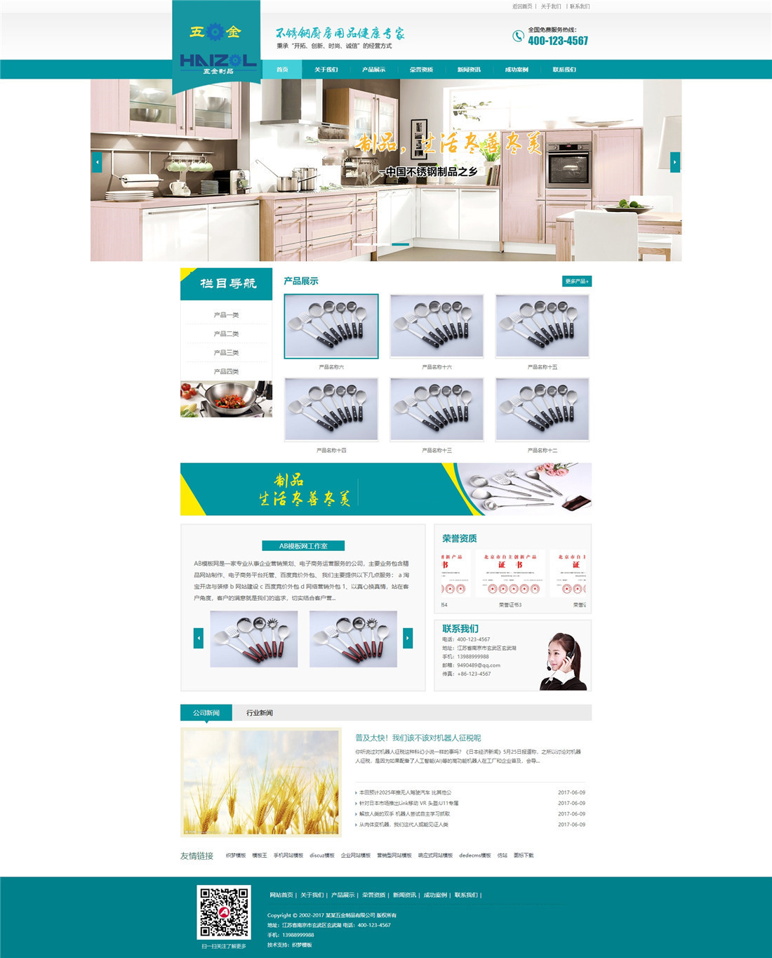 2、适用于厨房不锈钢制品、五金制品网站模板;