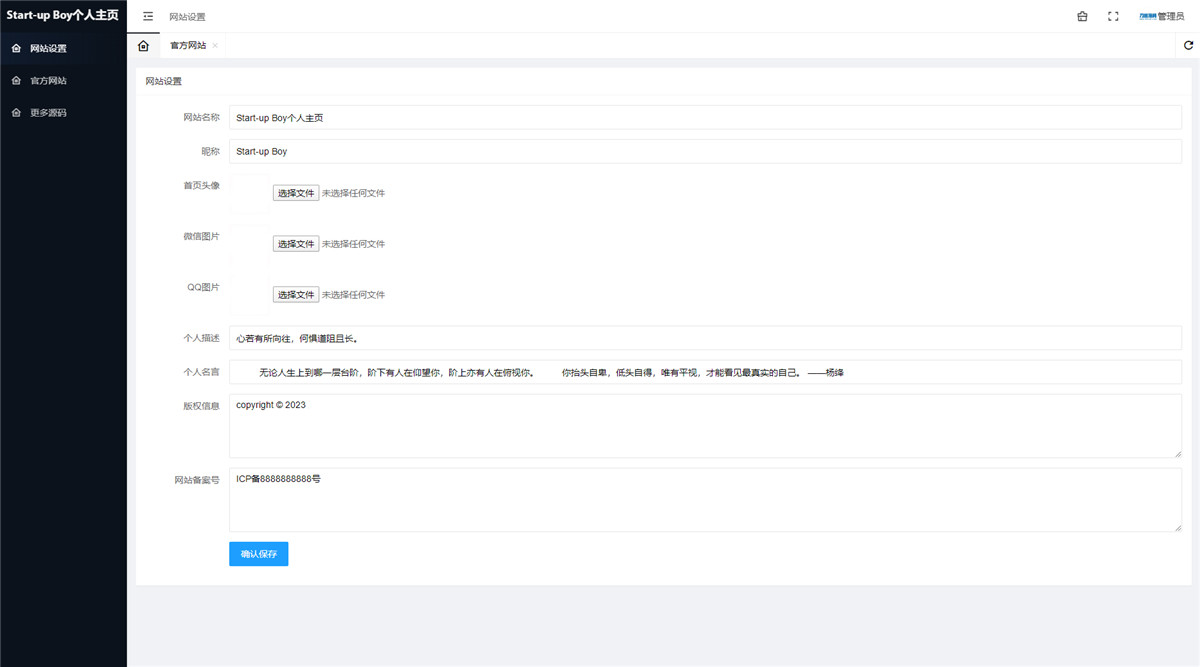 一款简单的个人主页源码,动态星空背景风格,thinkphp框架,带后台管理,主页内容后台都可以修改设置。