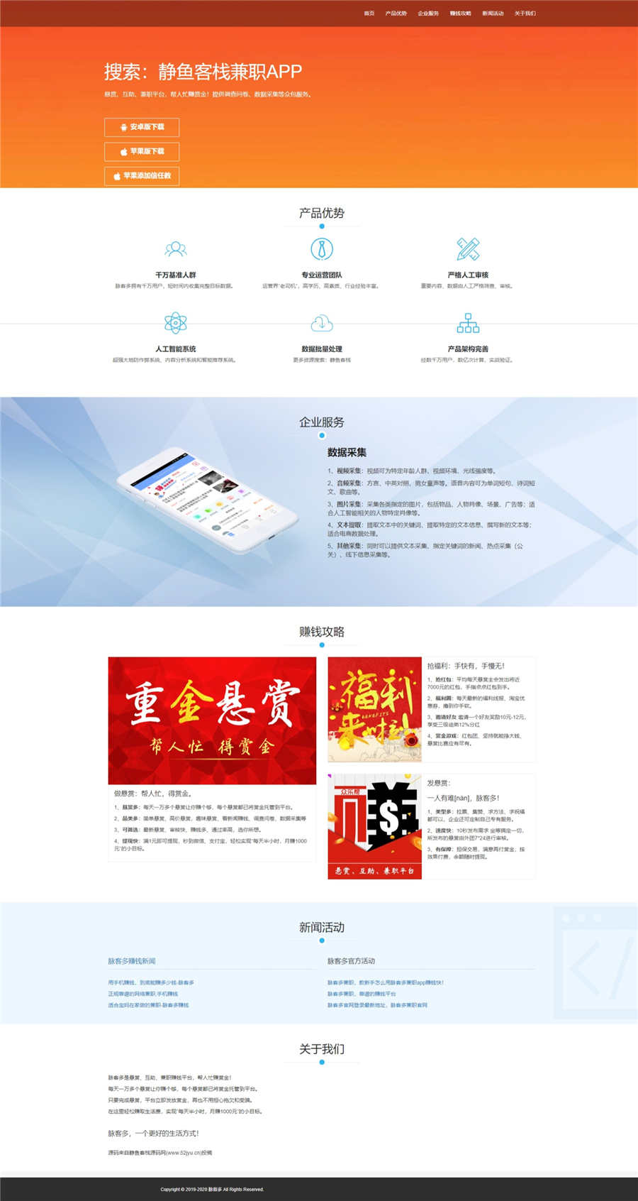 最新thinkPHP仿悬赏猫任务平台源码,带支付接口,可封装APP,功能齐全。包含接任务,发布任务,店铺关注,置顶推荐,排行榜,红包大厅,红包抽奖,任务步骤,举报维权,vip会员特权等众多功能。