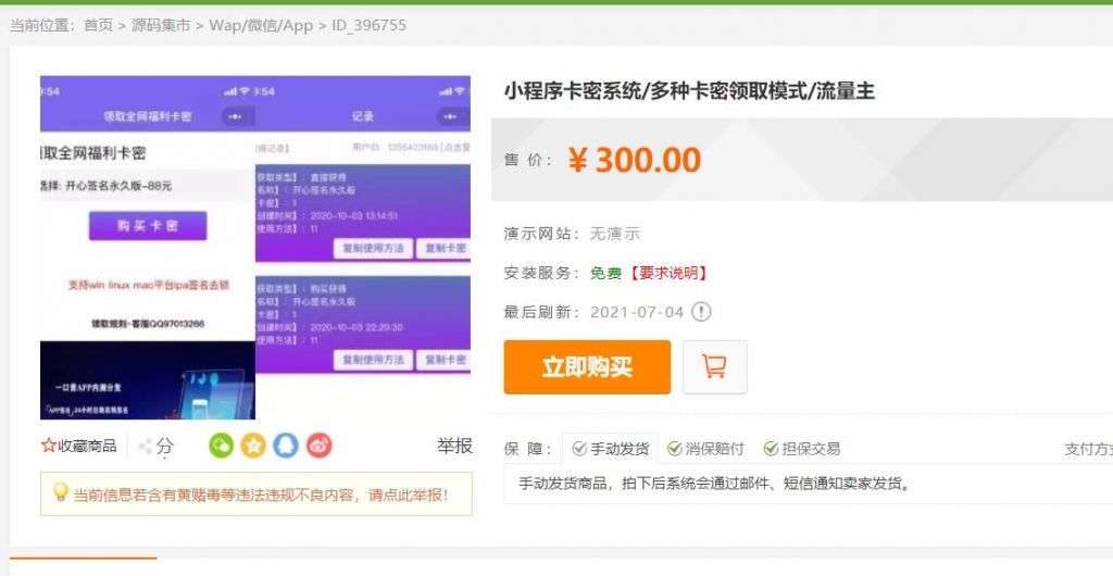 源码说明 互站上花300元流量裂变发卡小程序源码,带流量主裂变扩展,用户可以看广告增加收益。带前端+后台,测试搭建表现良好! 主要功能:小程序发卡系统/多种卡密领取模式/流量主;支持:添加分类丨分类介绍丨导入卡密丨卡密使用说明;支持:直接领取丨观看广告领取丨广告+分享领取丨购买领取; 资源下载下载价格19 ADD币VIP 8折、终身VIP免费立即购买仅学习交流,商用请买正版,一切后果由下载用户自行承担。若侵犯了您的权益,请来信通知Email: support@addprofans.com。购买即默认同意我们的政策。 原文链接:https://addprofans.com/traffic-fission-card-issuance-applet/,转载请注明出处。 0 0