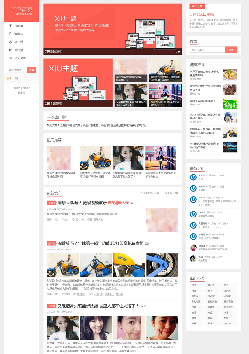 wordpress阿里百秀主题模板v7.7版本,本次XIU主题更新重点是几项功能新增,尤其是标签页的全面SEO功能,包含了标题、关键词和描述的设置。