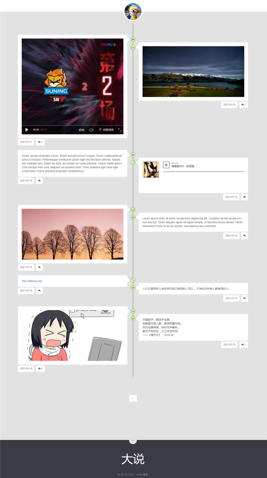 WordPress大说时间轴主题模板v1.3,自适应手机端,点击头像前端发布。