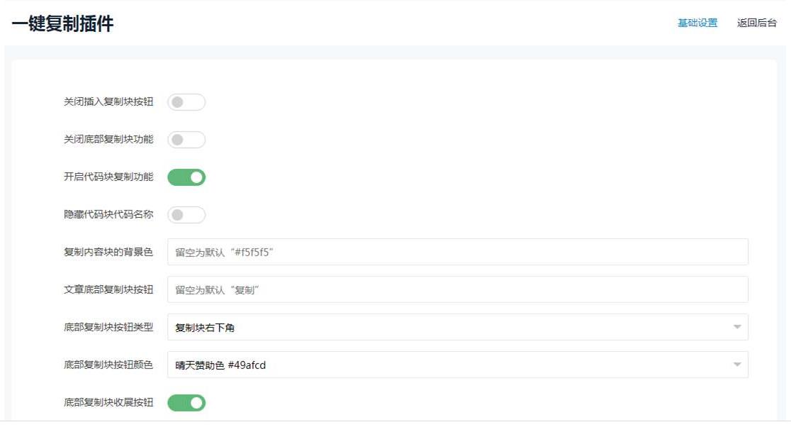 zblog文本代码复制美化插件,支持一键复制指定文本内容,修改UE编辑器默认的代码高亮效果,增加代码复制按钮,兼容自带的UE编辑器和NE编辑器,可自行选择复制按钮7种颜色以及复制按钮的5种位置等个性化配置。